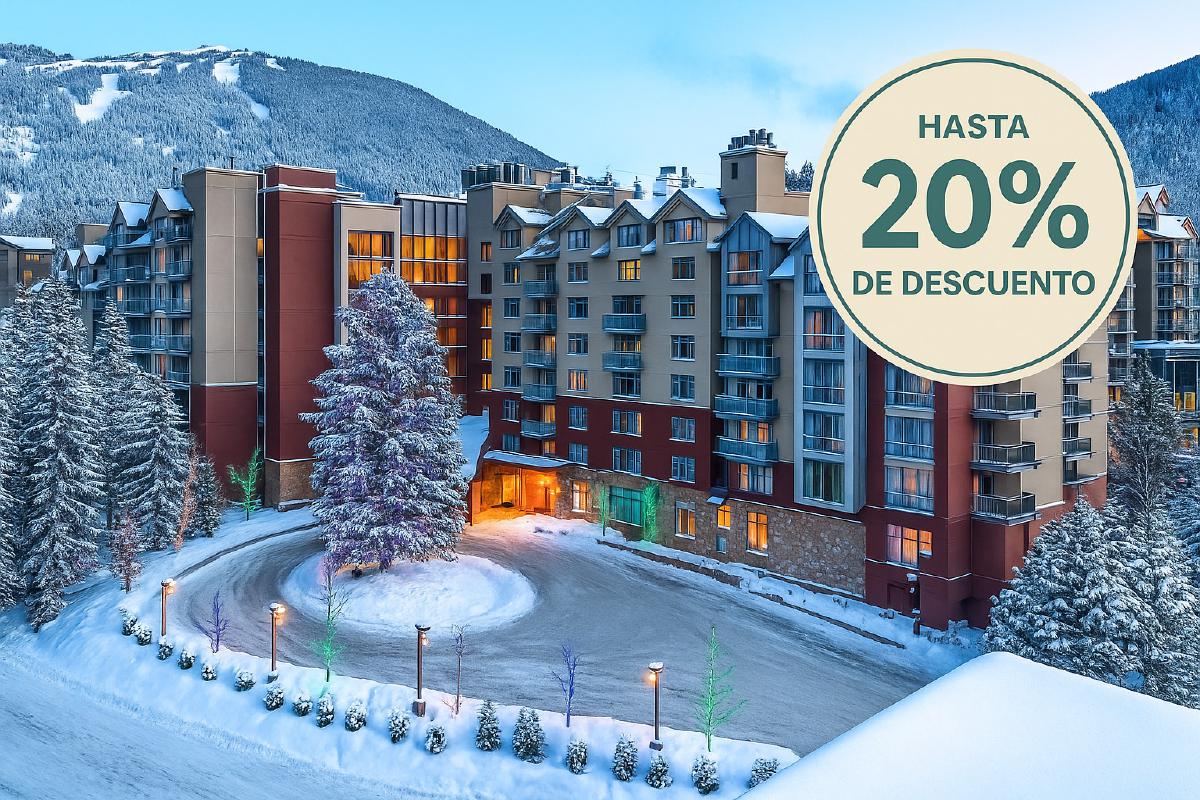 Válido en estancias de 4 noches o más, con descuentos adicionales de hasta 30% en estancias de 7 noches o más. ¡Vive Whistler con lujo y la mejor ubicación!